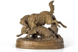 Бронзовая скульптура борзой, одолевающий волка, искусной ручной работы российских мастеров несомненно порадует охотника и коллекционера.