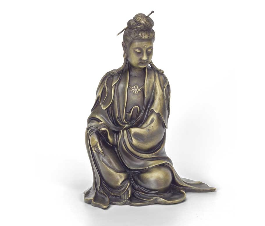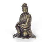 Бронзовая статуэтка сидящей бодхисаттвы Гуаньинь отлита из высококачественной художественной бронзы российскими мастерами по модели из коллекции князя Юсупова.