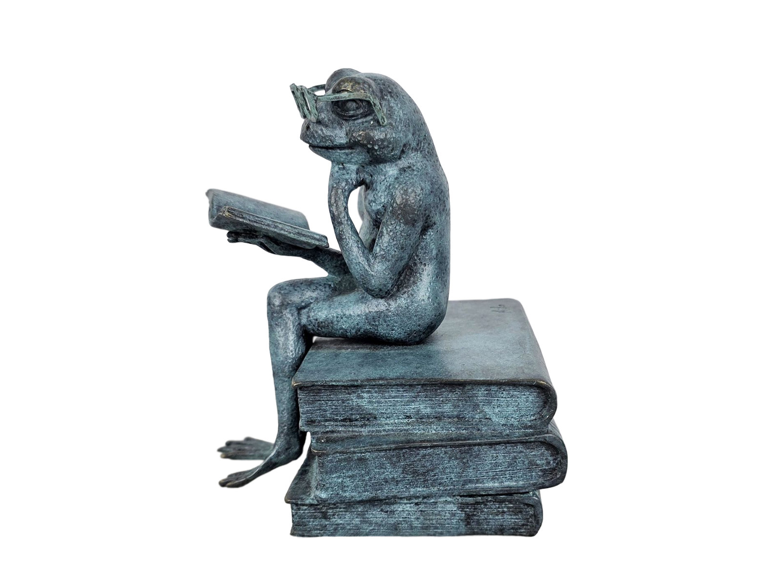 Бронзовая статуэтка читающей лягушки на стопке книг украсит интерьер кабинета и несомненно станет главным акцентом на книжной полке или письменном столе в качестве пресс папье.