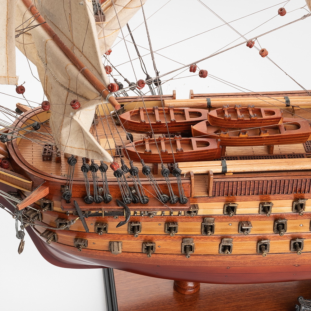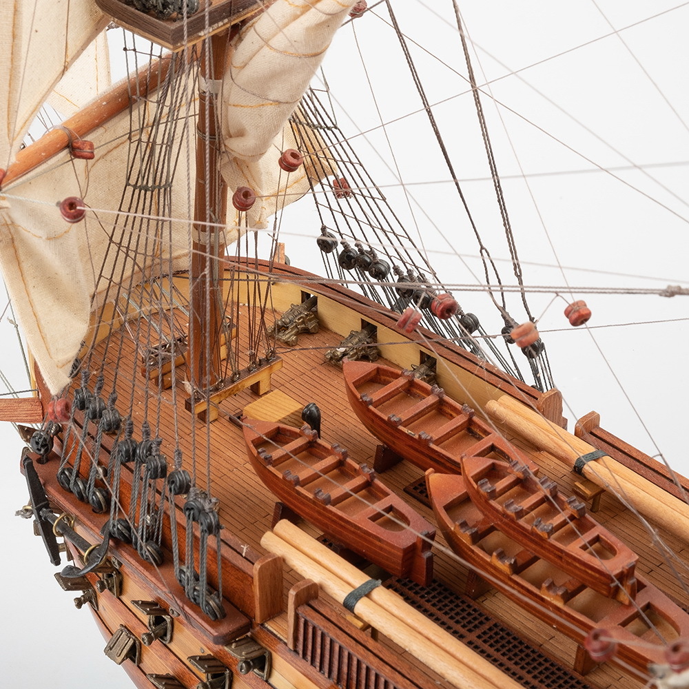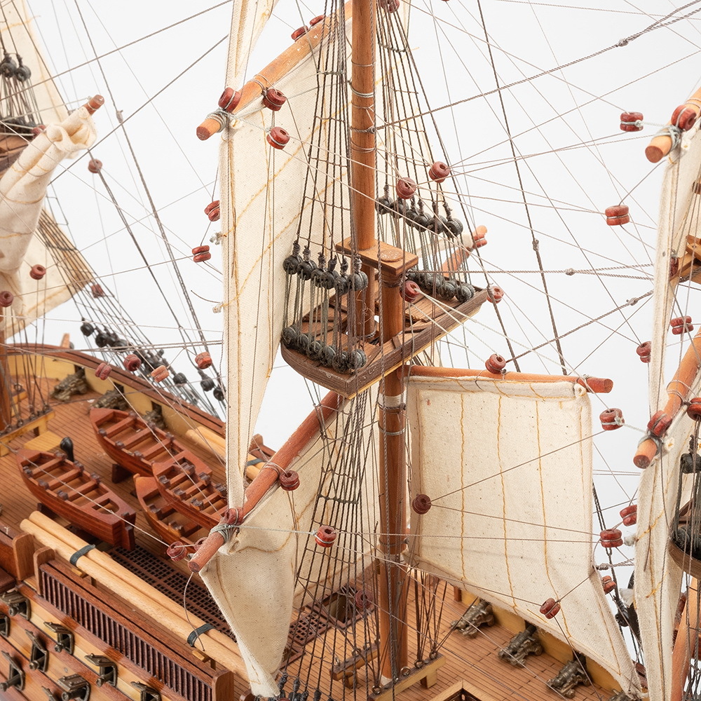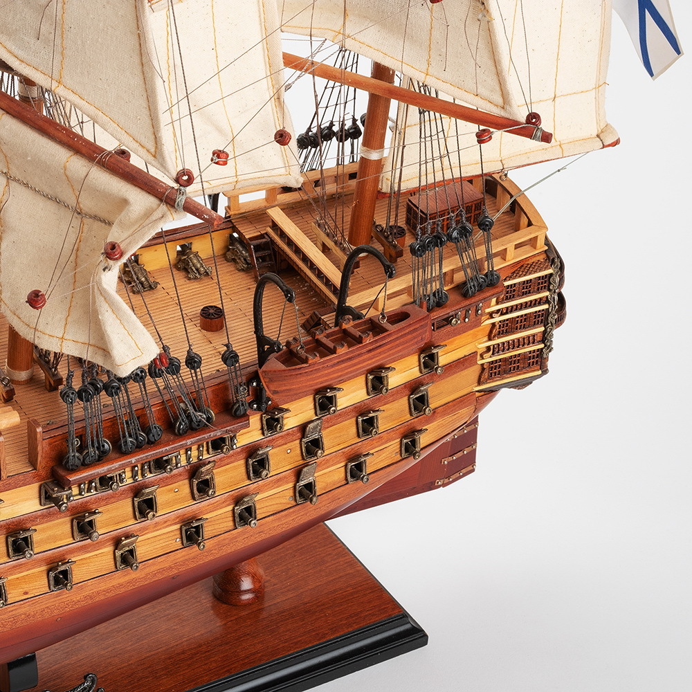 На сегодняшний день существует крайне мало качественно выполненных моделей парусников «12 апостолов» и эта - одна из редких, заслуживающих внимания. Сделана из красного канадского кедра (очень дорогого материала), пушки созданы из латуни. Расположение каждой детали исторически выверено.