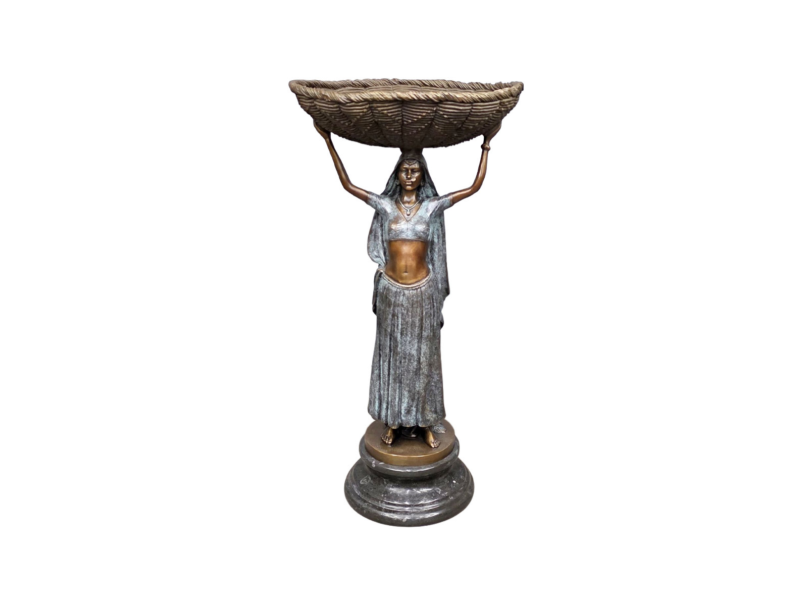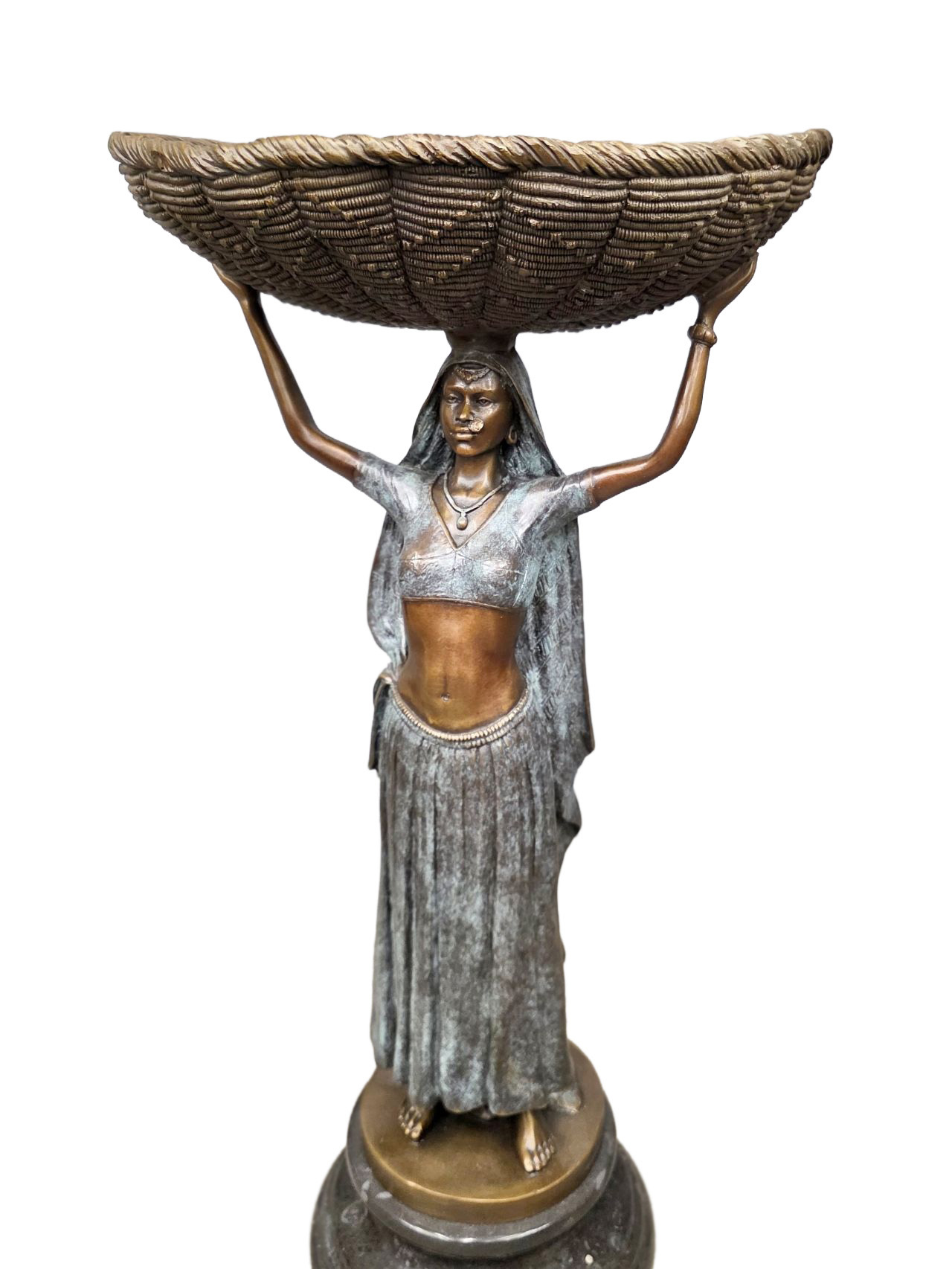 Бронзовая напольная скульптура туземки с корзиной на голове несомненно станет украшением интерьера квартиры или загородного дома.