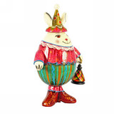 Зайчик шкатулка из коллекции подарков ручной работы сделан из дерева, которое называется липа. Это мягкое удобное в обработке лиственное дерево. Сначала вытачивается на токарном станке тело пасхального зайчика, затем ручки и так далее. Зайчик шкатулка держит в руке скворечник, он собирается повесить его для прилетающих с юга птиц. Это его подарок на Пасху. Зайчик шкатулка имеет форму яйца - символа пасхи. Это яйцо размыкается и в него можно положить подарок на Пасху. Зайчик шкатулка (футляр для подарка) и сам является превосходным подарком на Пасху, в нём легко помещается куриное пасхальное яйцо. Так выглядит зайчик, несущий яйца. Зайчик шкатулка расписан тонкой акварельной росписью. Чтобы краска не стиралась и не царапалась, зайчик шкатулка защищён лаком.