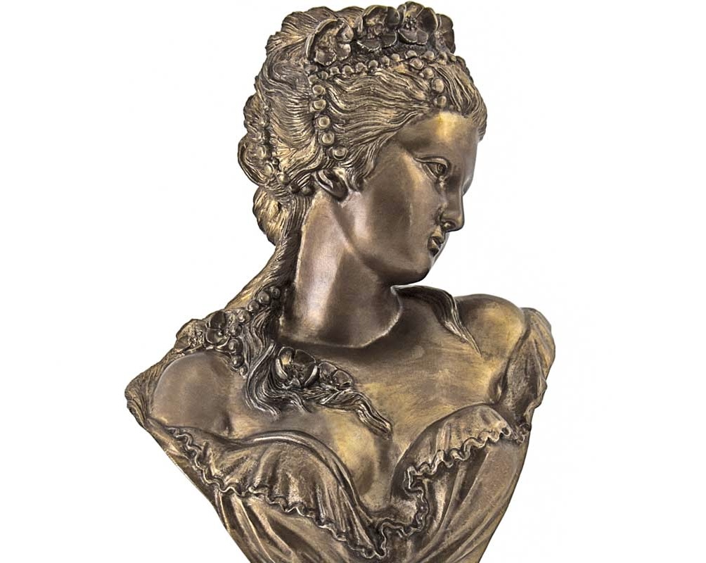 Женская статуэтка в нежном весеннем образе искуснейшей работы российских мастеров дополняет серию парных композиций красивых женских образов. Является репродукцией работы известного скульптура Императорской Академии Художеств, Баха Н.Р. (1853-1885 г.).